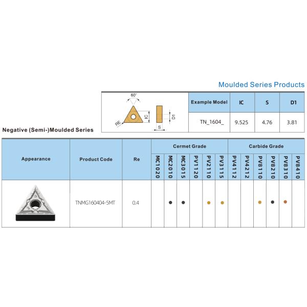 TNMG16 Negative CNC Turning Inserts with 5MT Semi-Finish Chipbreakers, Cermet Turning Insert Images |